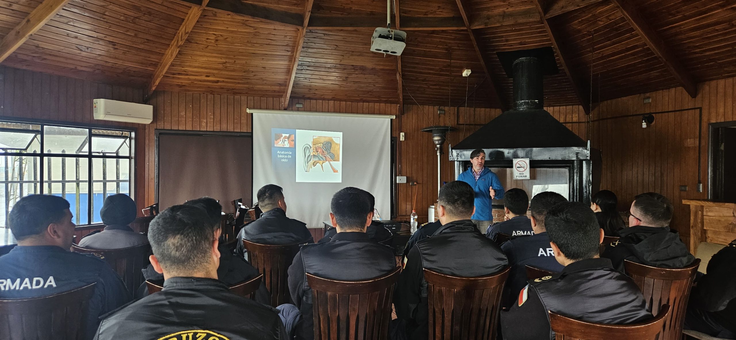 La actividad, desarrollada en la Base Naval de Chinquihue, estuvo dirigida a sensibilizar sobre los riesgos auditivos asociados al buceo y al trabajo en entornos de alta exposición al ruido, reforzando el autocuidado y la prevención en salud.