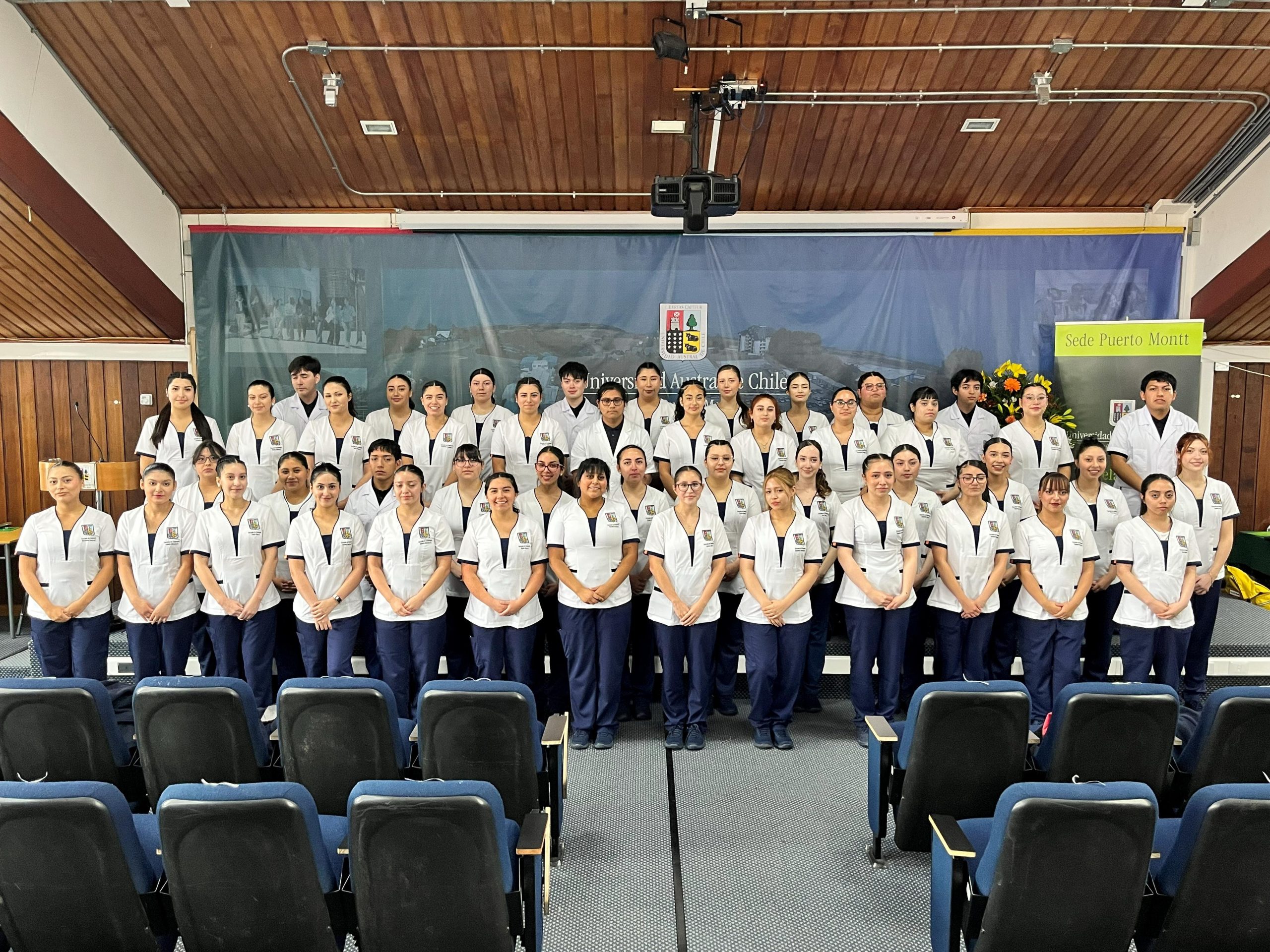 En una solemne ceremonia realizada este viernes 24 de abril en el Aula Magna de la Universidad Austral de Chile Sede Puerto Montt, 46 estudiantes de segundo año de la carrera de Enfermería fueron investidos, dando inicio a una nueva etapa en su formación profesional vinculada al ámbito clínico.