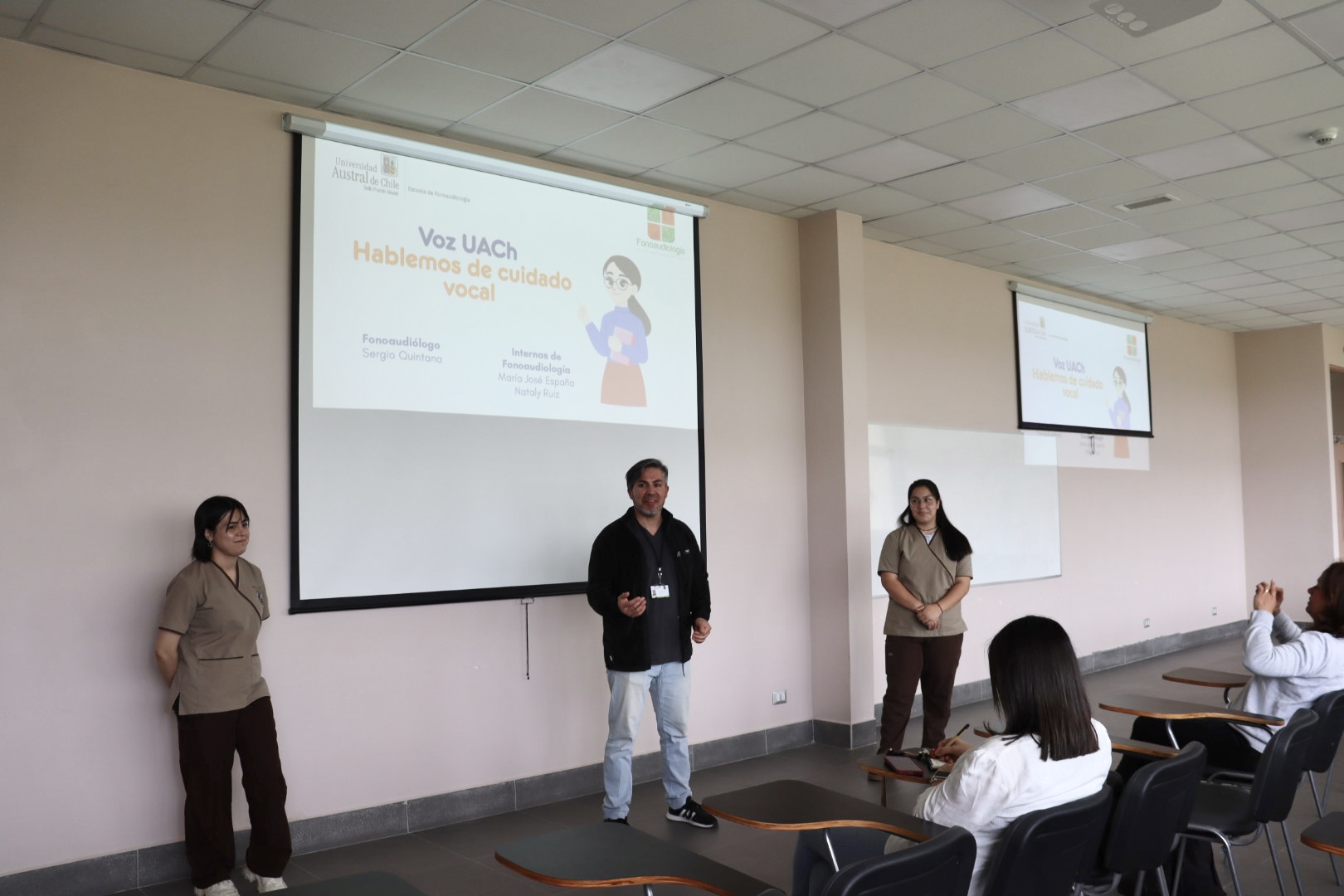 La Universidad Austral de Chile (UACh), Sede Puerto Montt, a través del Comité Paritario de Higiene y Seguridad y la Escuela de Fonoaudiología, organizó la charla práctica “Tu voz, tu herramienta: Cuídala y protégela”, realizada los días 13 y 18 de noviembre. Ambas sesiones abordaron los problemas vocales más frecuentes en profesionales que utilizan la voz de manera intensiva, especialmente docentes, cantantes y estudiantes de pedagogía.