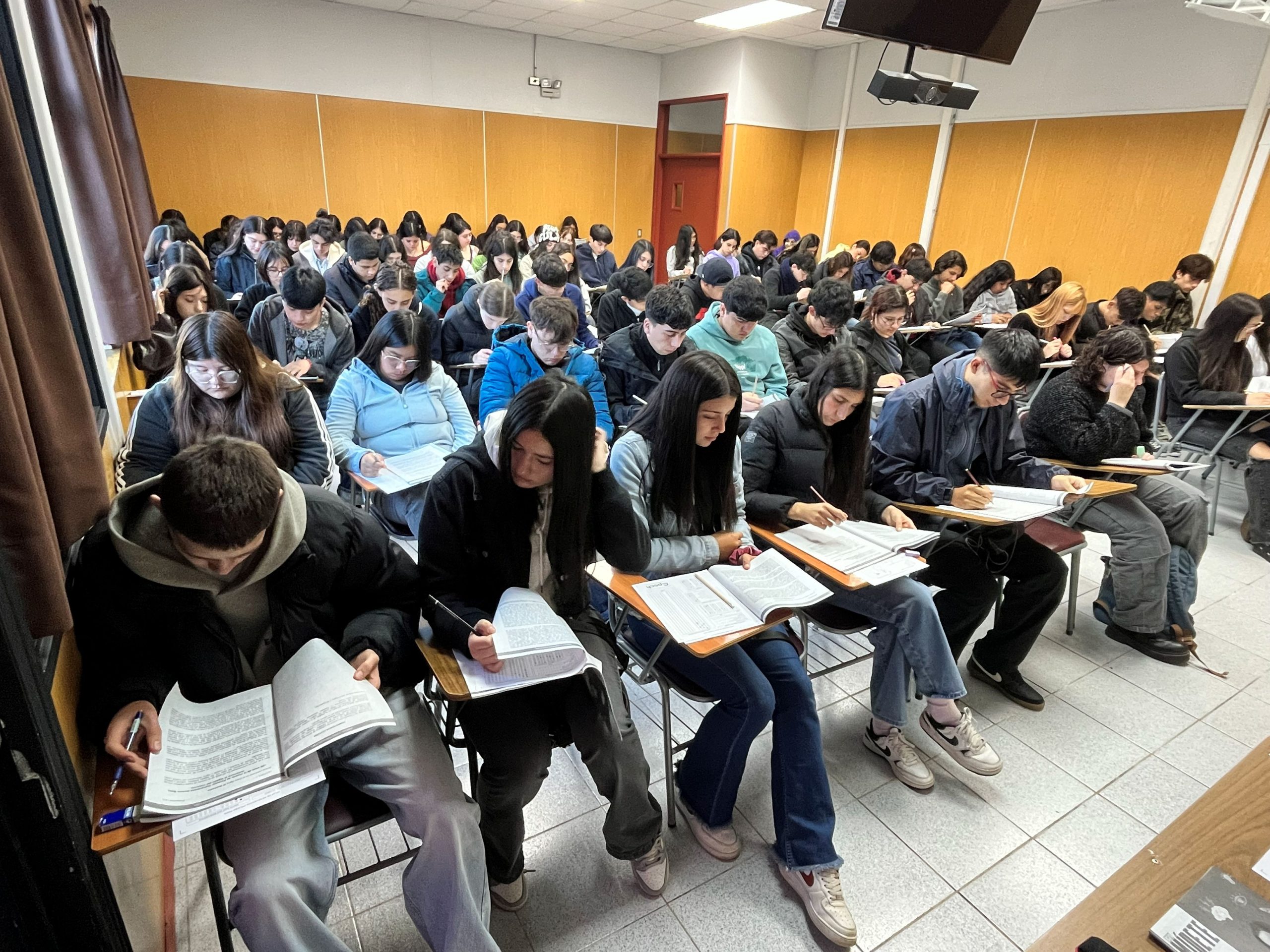 La actividad, desarrollada en el Campus Pelluco, permitió a las y los jóvenes enfrentar una experiencia similar a la prueba oficial, contribuyendo a disminuir la ansiedad y fortalecer su preparación. Junto con el ensayo, se llevó a cabo una feria de carreras, donde los asistentes pudieron informarse sobre la oferta académica de la casa de estudios.