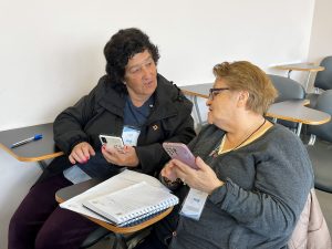 En el marco de esta jornada, se realizó un acompañamiento práctico en el uso de la plataforma mayoreschile.cl, instancia en la que docentes de la UACh trabajaron directamente con las y los participantes. Al respecto, Marisel Santana, profesional a cargo del equipo ejecutor del proyecto, explicó que “estuvimos trabajando en la aplicación mayoreschile.cl con los adultos mayores, donde cada docente tomó un grupo y le enseñó particularmente cada una de las funciones de esta aplicación, que está pensada para los mayores y para los monitores de Chile”.