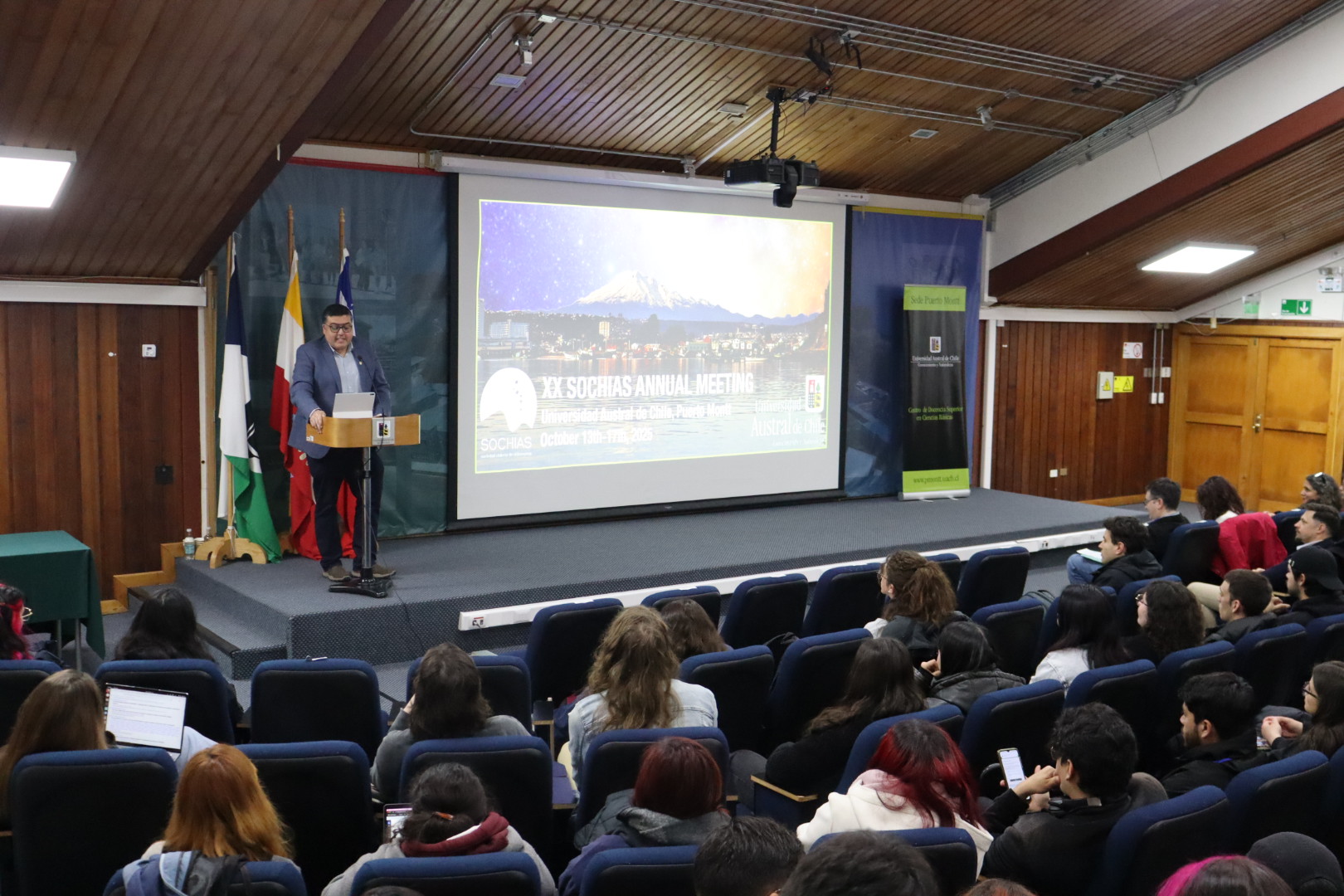 Claudio Navarro, académico del Centro de Docencia en Ciencias Básicas de la Sede Puerto Montt UACh y miembro del Comité Organizador Local de SOCHIAS, señaló: “Realizar este encuentro en nuestra universidad permite fortalecer la colaboración entre investigadores, compartir conocimientos y proyectar la astronomía chilena hacia nuevas generaciones y audiencias. Además, nos permite mostrar que la investigación de calidad también se desarrolla desde el sur austral, aportando al desarrollo científico y al fortalecimiento de redes nacionales e internacionales”.