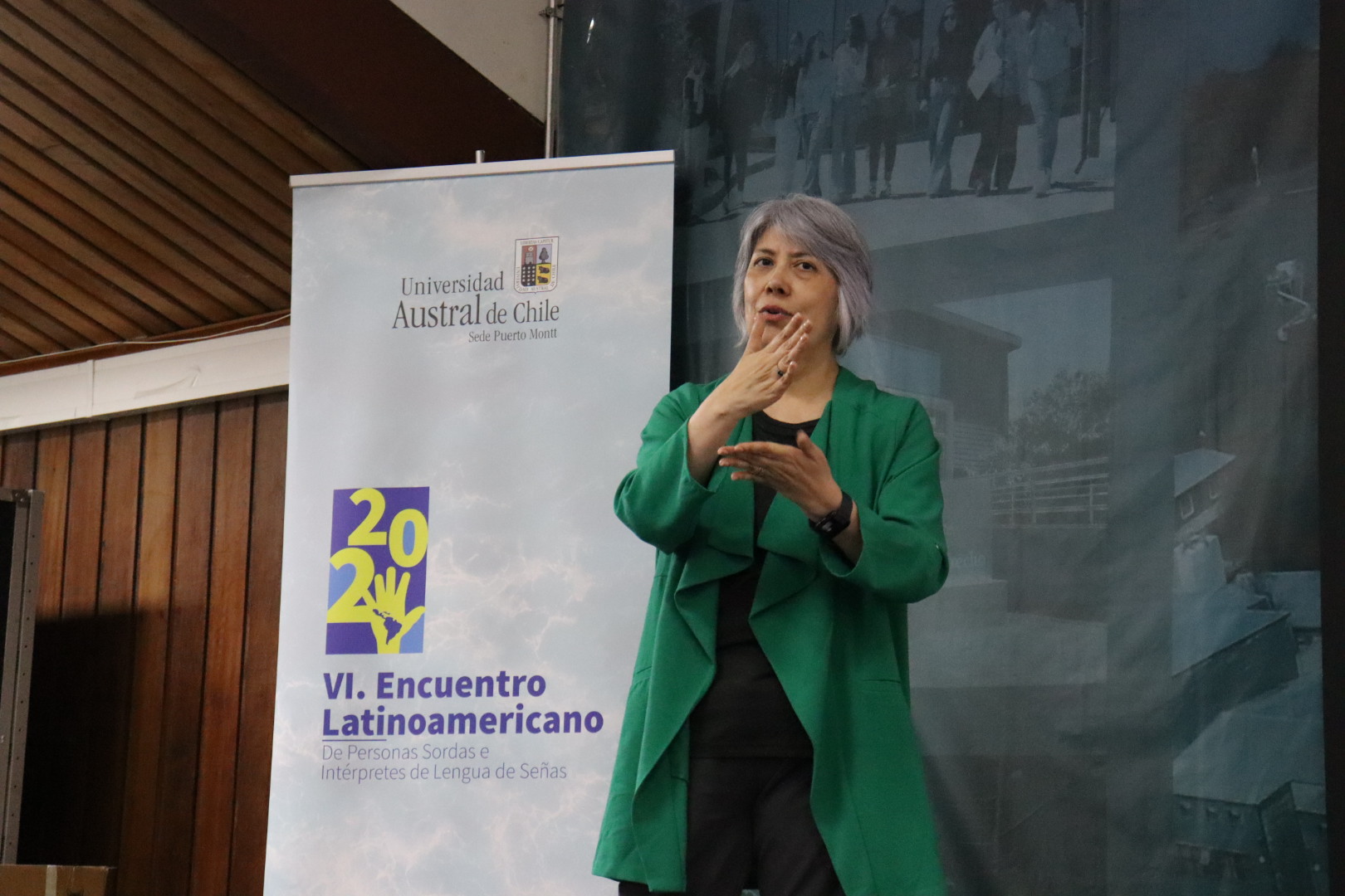 Entre el 20 y el 22 de noviembre de 2025, la Universidad Austral de Chile (UACh), Sede Puerto Montt, fue sede del VI Encuentro Latinoamericano de Personas Sordas e Intérpretes de Lengua de Señas, un evento internacional que reunió a personas sordas, intérpretes, educadores, investigadores y profesionales de diversas disciplinas. Organizado por la Asociación Latinoamericana de Personas Sordas e Intérpretes (ELAPESI) y el Instituto de Especialidades Pedagógicas de la UACh, con el apoyo del Centro de Investigación para la Educación Inclusiva – EDUINCLUSIVA, Movimiento 42, el Centro de Educadores Sordos de Chile (CES), el Ministerio de Educación y Agencia Nacional de Investigación y Desarrollo (ANID) con los Proyectos N°11230929 de la Dra. Fabiola Otárola Conejo y  el Proyecto N°11230766 Dra. Karina Muñoz Vilugrón, el encuentro buscó promover el intercambio de experiencias, conocimientos y buenas prácticas en torno al acceso lingüístico, los derechos culturales y la formación de intérpretes de lengua de señas.